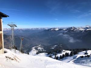 Anschliessend nach einem kleinen Fussmarsch waren wir bei der Gondelbahn und lösten die Tickets zum Gruppentarif ein und fuhren mit der roten 6er „Gondelibahn“ hinauf auf den Rinderberg. Die Sonne begrüsste uns auf dem Berg und wir konnten die harten Skipisten geniessen. Die Schneeverhältnisse waren gut und es reichte sogar für die Talfahrt.