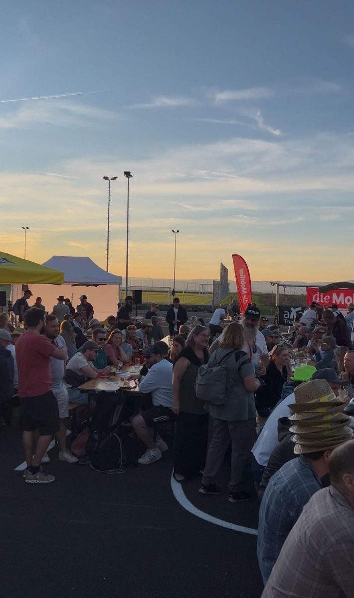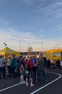 Ab ca. 16 Uhr trafen die ersten Bierwander:innen im Start-/Zielgelände bei der MZH ein, gegen 17 Uhr füllte sich das Areal zunehmend. Das Festgelände befand sich auf dem asphaltierten Platz vor dem FC-Unterstand, erstmals ohne Staub und Dreck des Ricoter Feldes 😊. Das Essen wurde wie jedes Jahr im Gomio verkauft.