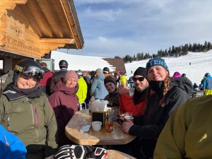 Anschließend nutzten alle die Gelegenheit für ein paar weitere Abfahrten, bevor wir uns zum gemeinsamen Mittagessen wieder trafen. Das Team der Haslerbar verwöhnte uns mit erstklassigen Burgern, während die kleinen Gäste sich über eine Piratenplatte mit Nuggets und Pommes freuen durften. Nach dem Essen zog es einige nochmals auf die Piste, während andere etwas länger in der Haslerbar verweilten.